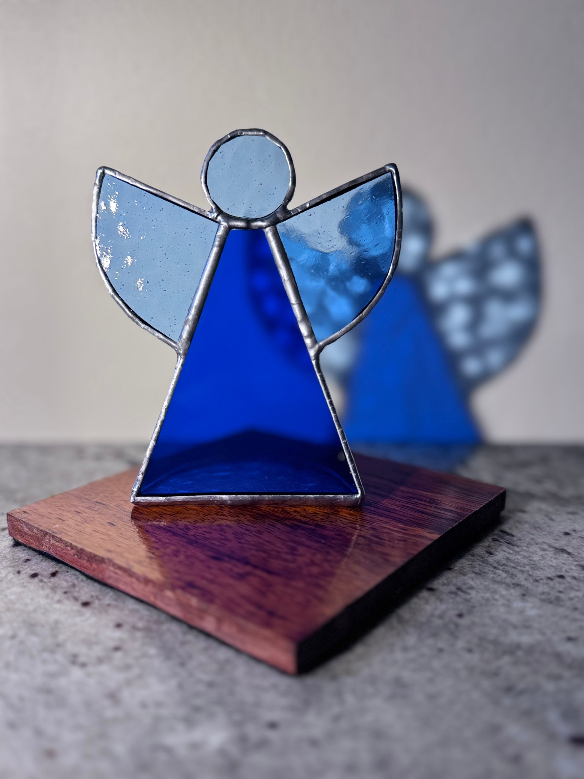 Staande Engel van Glas in Lood – 15 cm Groot, Unieke Kleuren